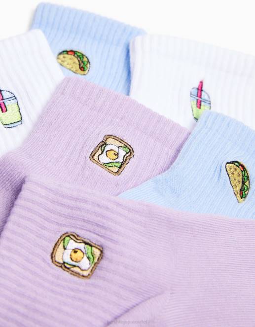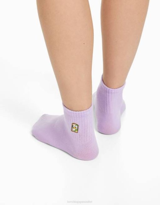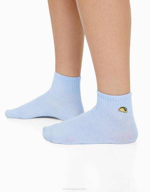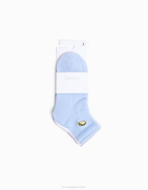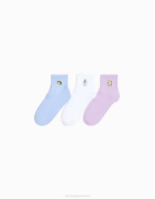 女性 Bershka 刺繍入りアンクルソックス 3 個パック 60442597 アクセサリー 白