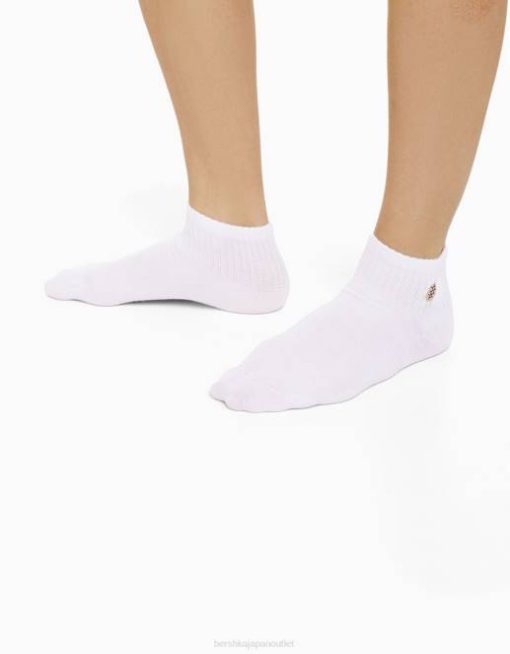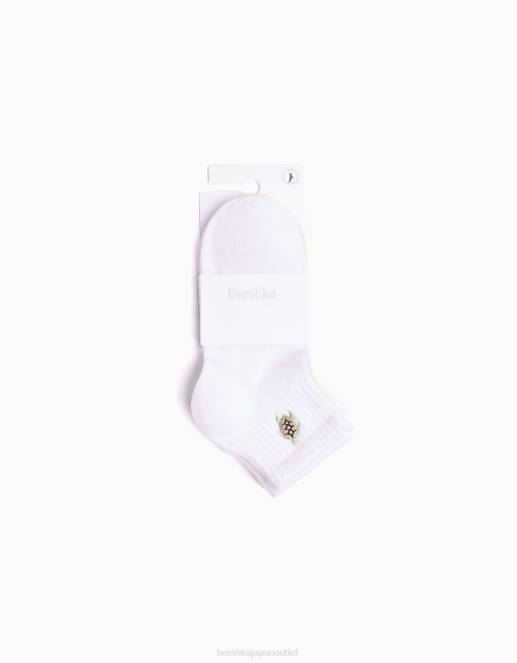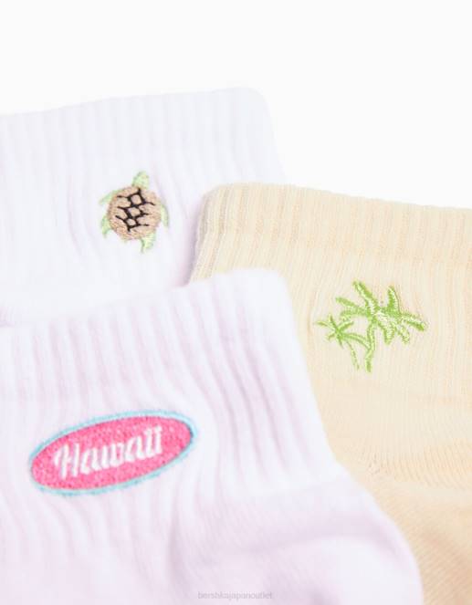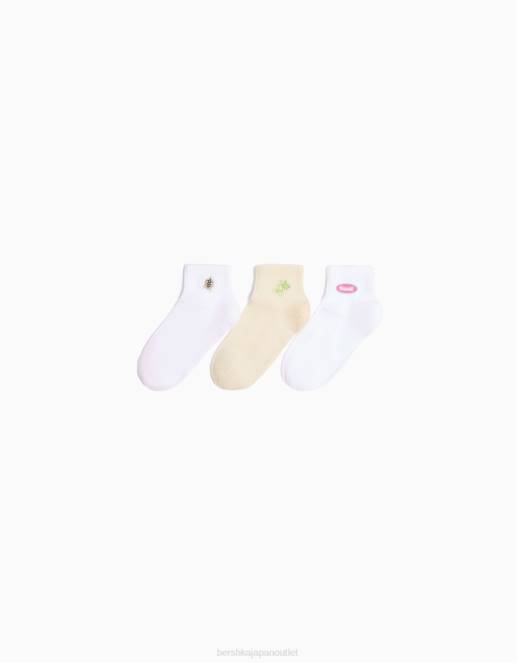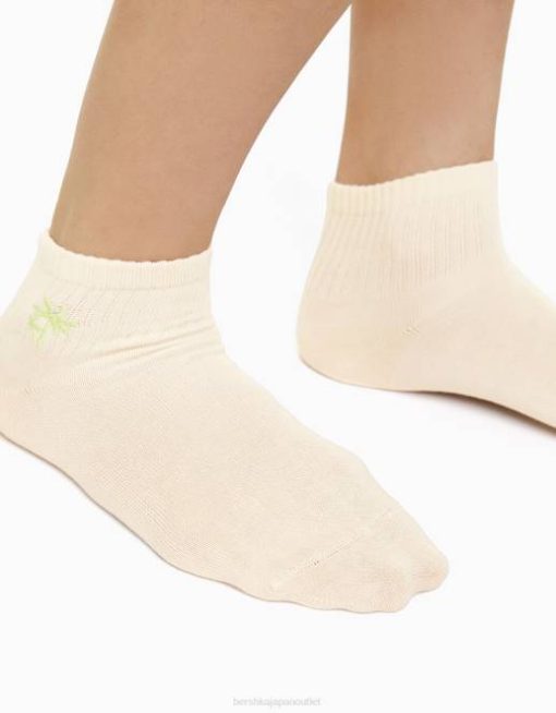 女性 Bershka 刺繍入りソックス3足セット 60442600 アクセサリー ベージュ