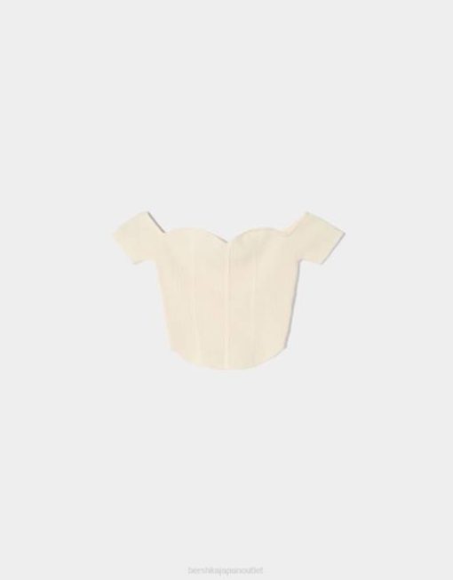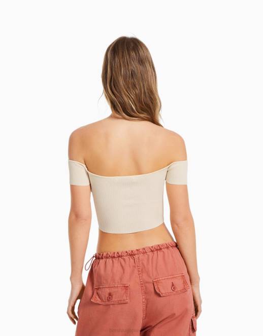 女性 Bershka 半袖オフショルダーニットコルセット 6044970 衣類 ベージュ