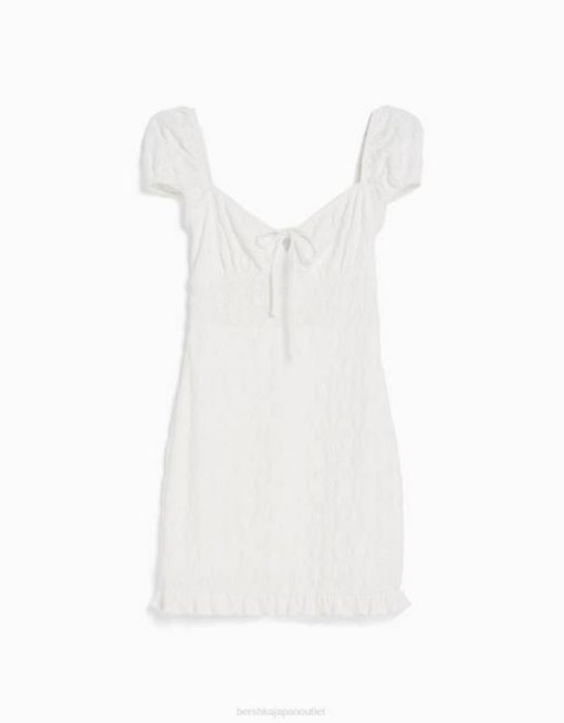 女性 Bershka 半袖スイス刺繍ミニドレス 60444102 衣類 クリーム