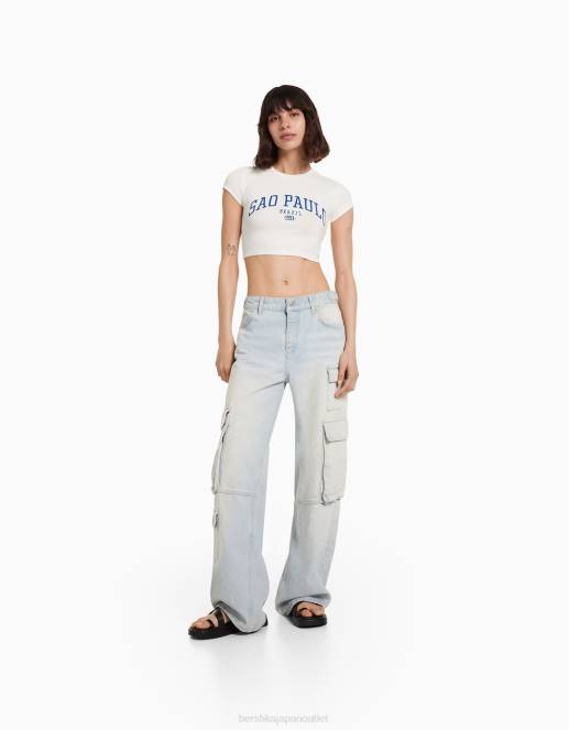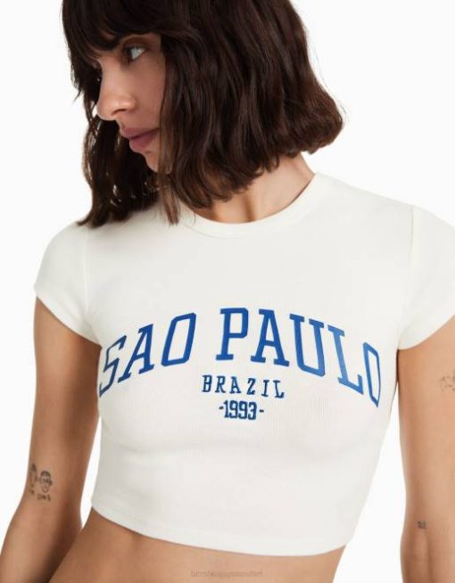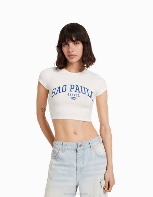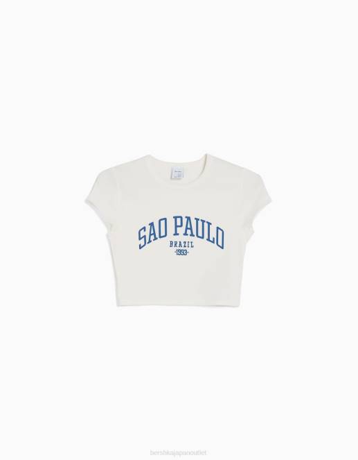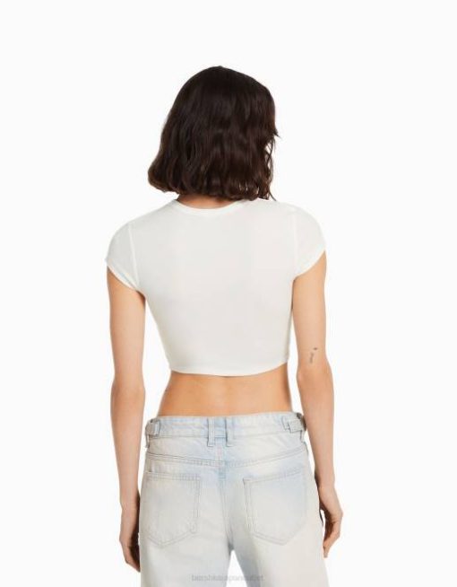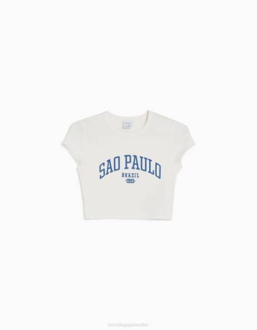 女性 Bershka 半袖プリントTシャツ 6044490 衣類 オフホワイト