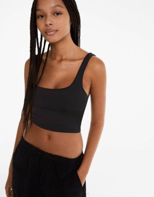 女性 Bershka 幅広のストラップ付きトップ 6044801 衣類 黒