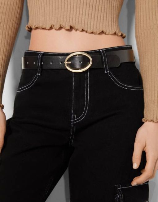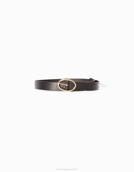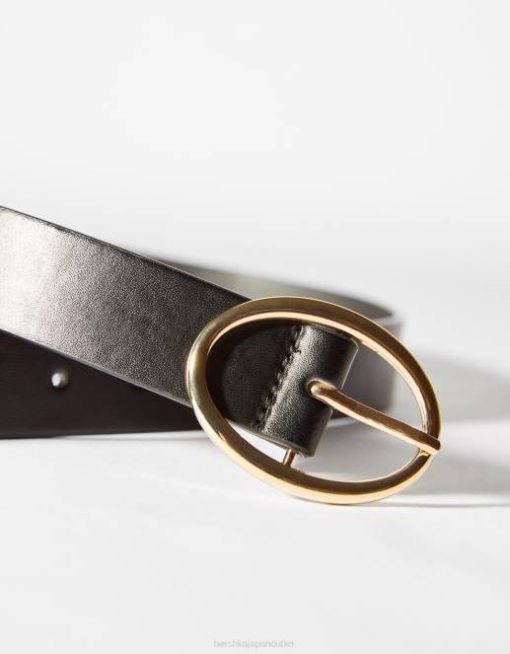 女性 Bershka 無地のフェイクレザーベルト 60442536 アクセサリー 黒