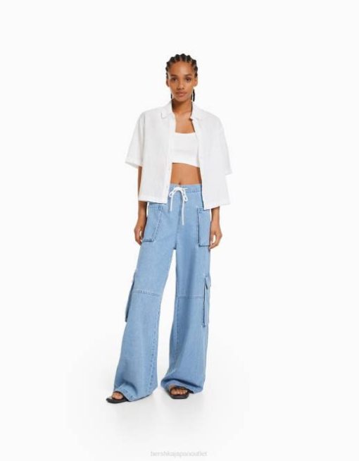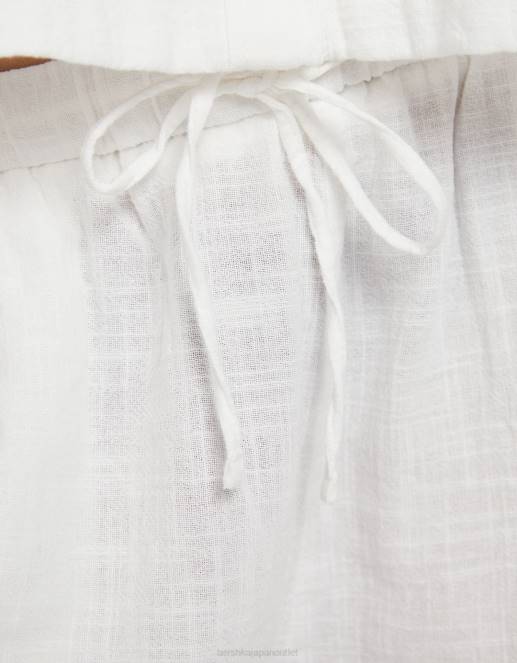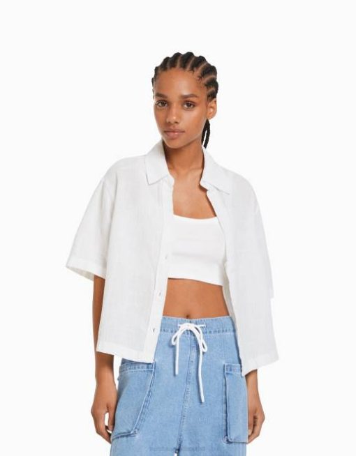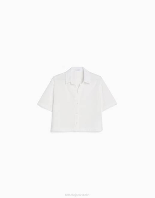 女性 Bershka 素朴なテクスチャード半袖シャツ 6044905 衣類 白