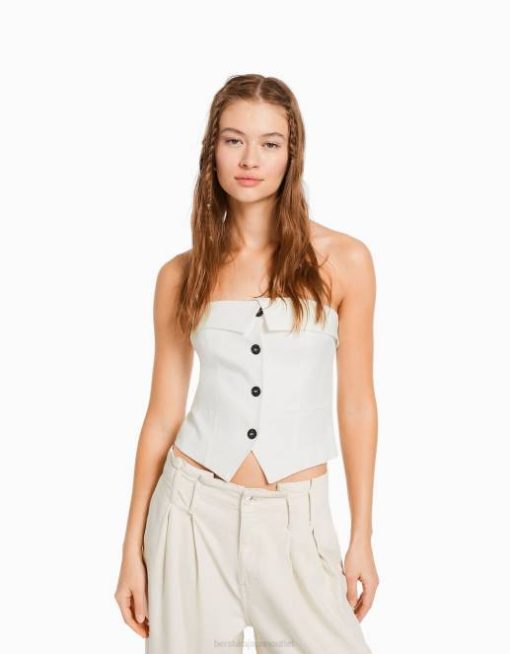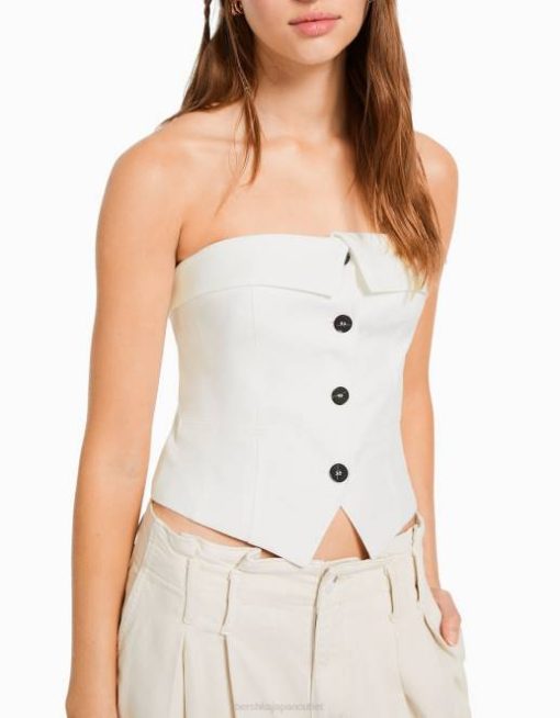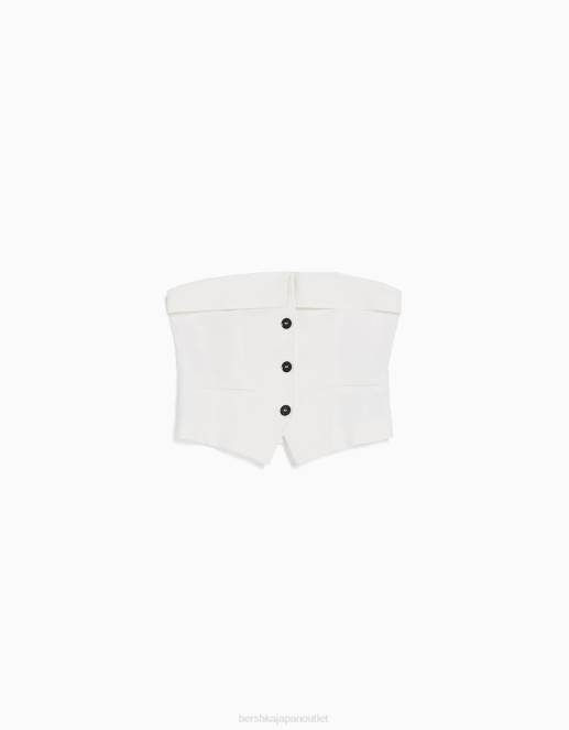 女性 Bershka 肩が露出したテーラードコルセットベストコート 6044683 衣類 オフホワイト