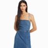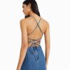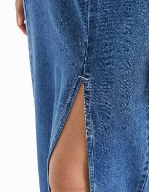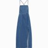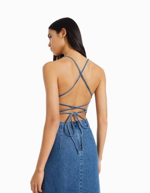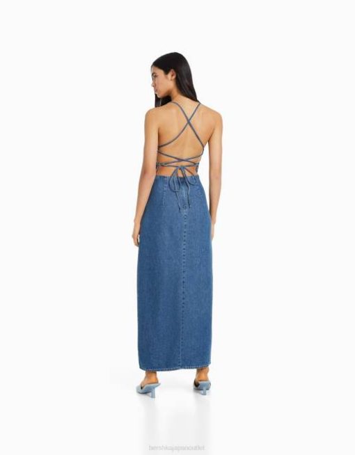 女性 Bershka 背中が開いたロングデニムドレス 60441940 衣類 ライトブルー