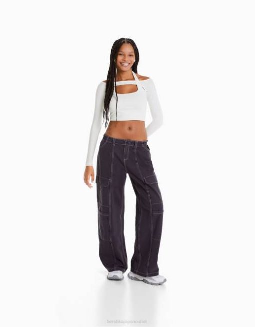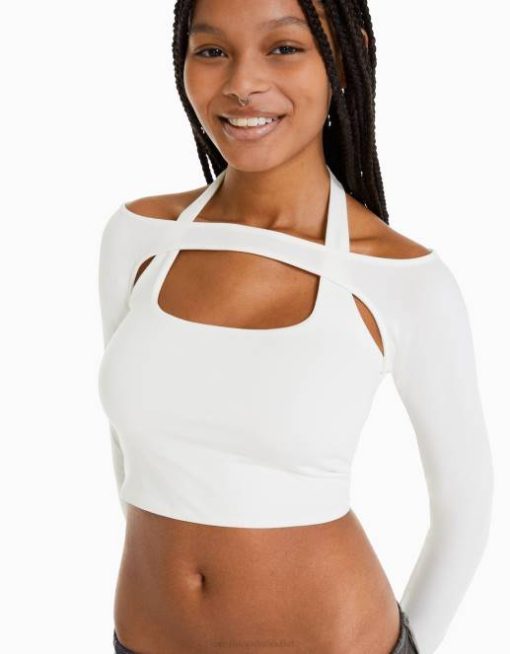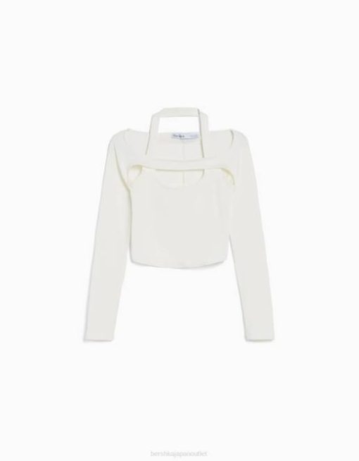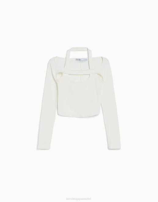 女性 Bershka 襟のディテール付き長袖Tシャツ 6044538 衣類 白