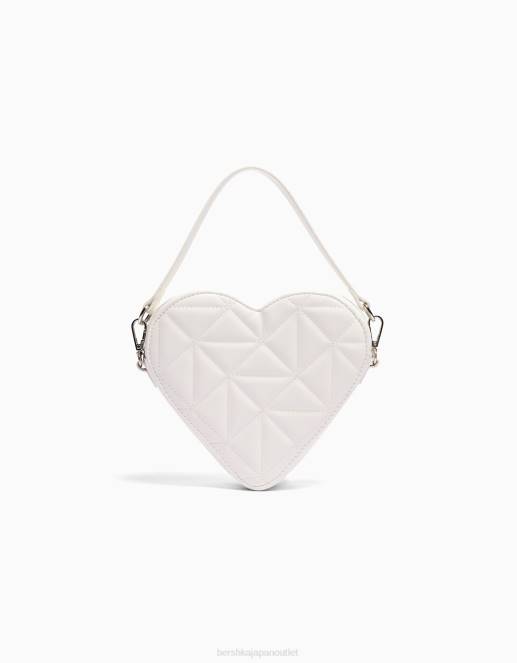 女性 Bershka 調節可能なストラップ付きキルティングハートバッグ 60442414 アクセサリー 白