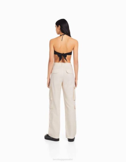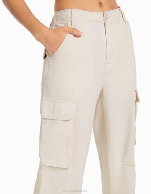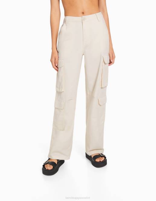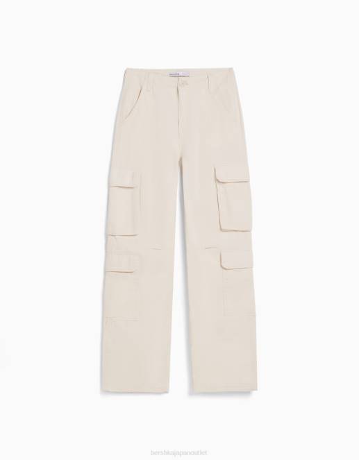 女性 Bershka 調節可能なマルチポケットツイルカーゴパンツ 60441299 衣類 クリーム