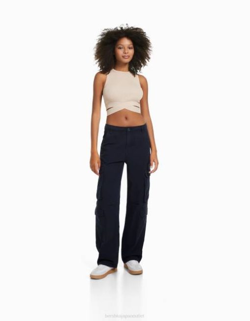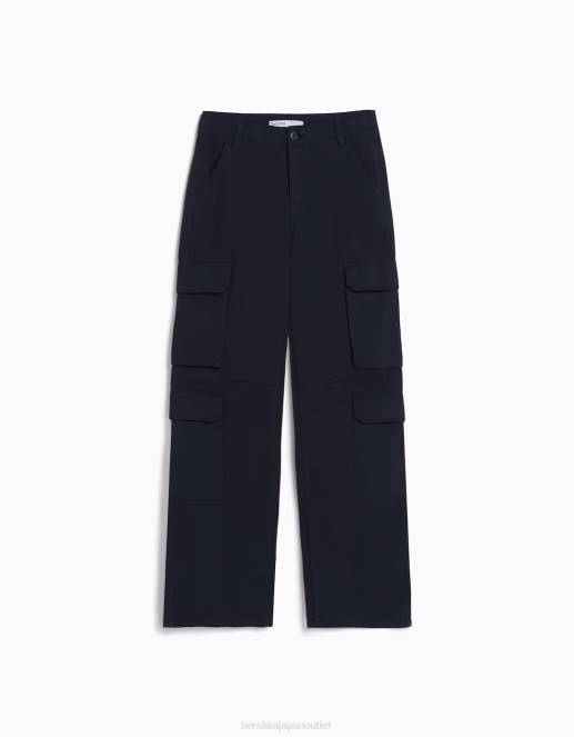 女性 Bershka 調節可能なマルチポケットツイルカーゴパンツ 60441323 衣類 エクスクルーシブ