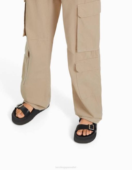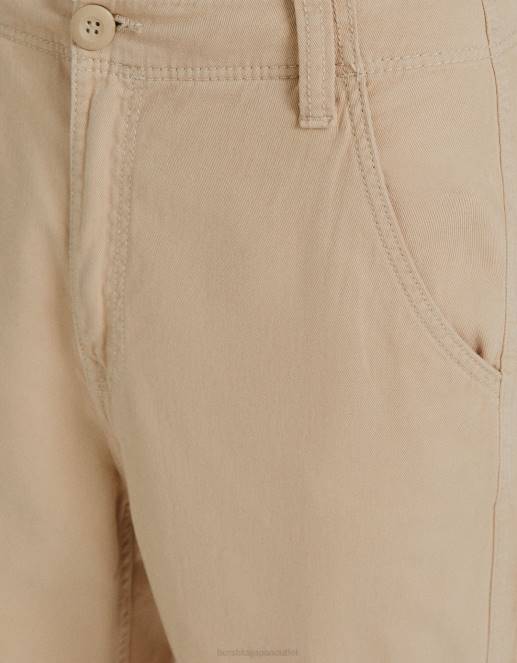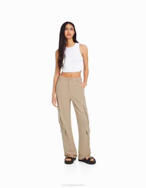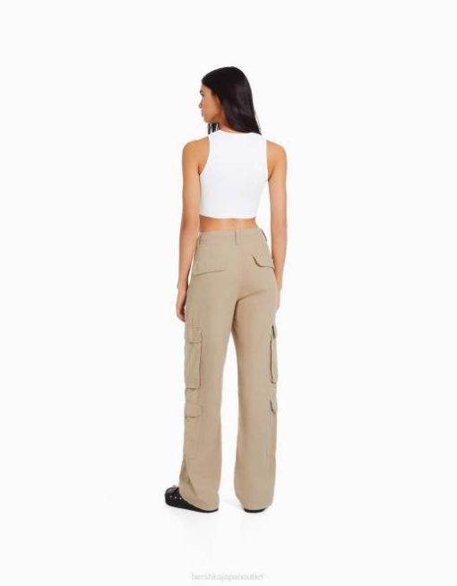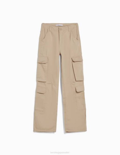 女性 Bershka 調節可能なマルチポケットツイルカーゴパンツ 60441289 衣類 キャメル