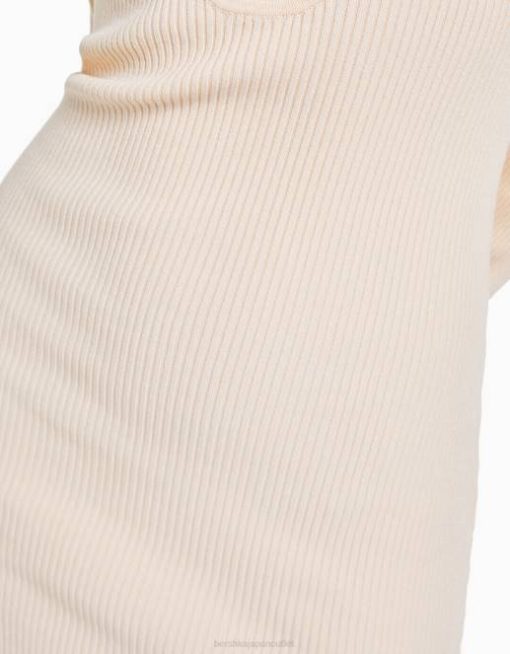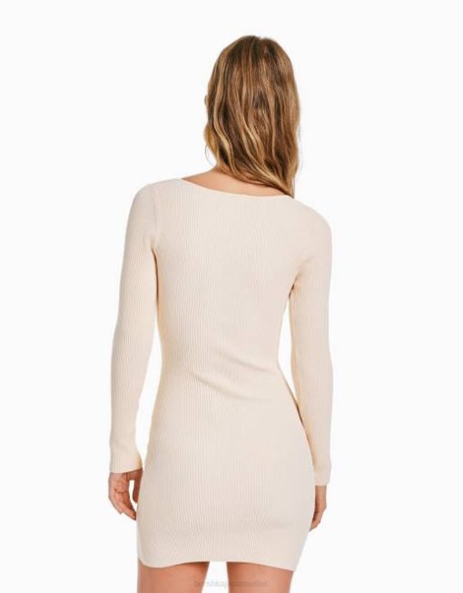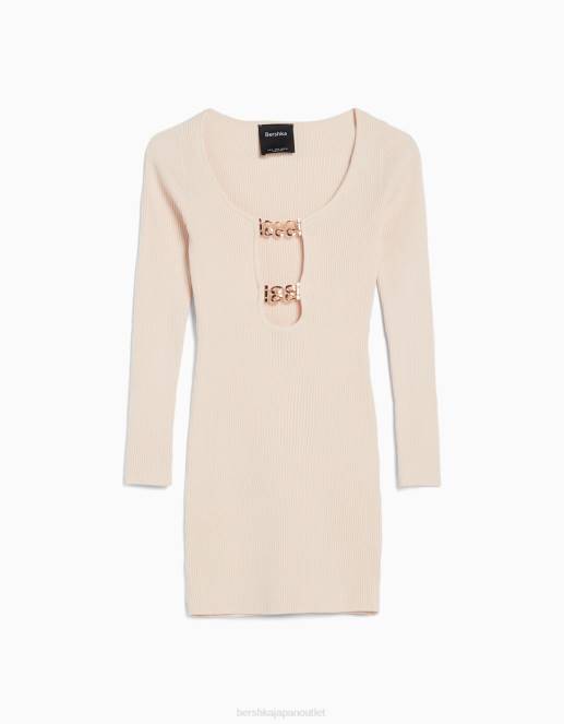 女性 Bershka 長袖とラインストーンのディテールのニットミニドレス 6044233 衣類 ベージュ