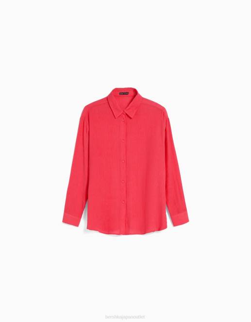 女性 Bershka 長袖オーバーサイズクレープシャツ 6044919 衣類 コーラル