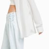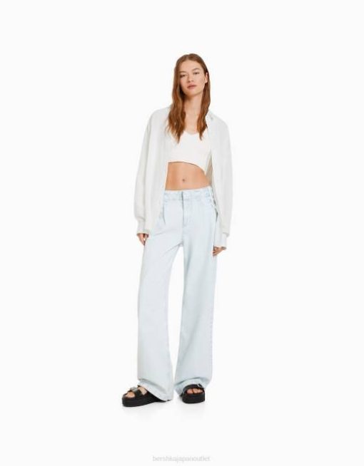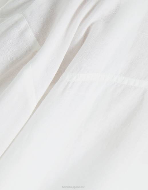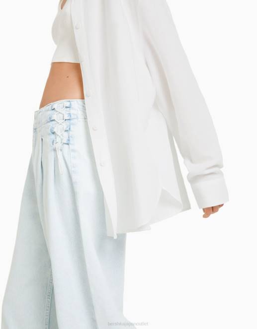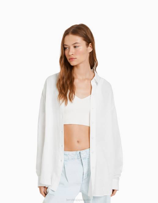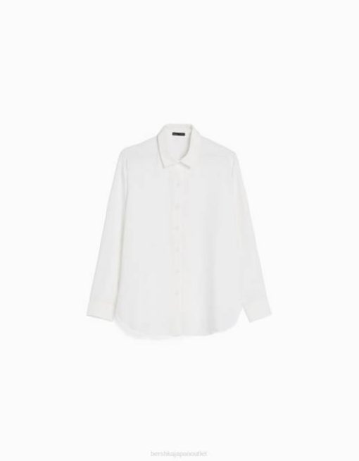 女性 Bershka 長袖オーバーサイズリネンシャツ 6044903 衣類 オフホワイト