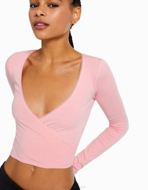 女性 Bershka 長袖クロスTシャツ 6044572 衣類 ピンク