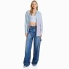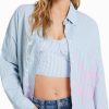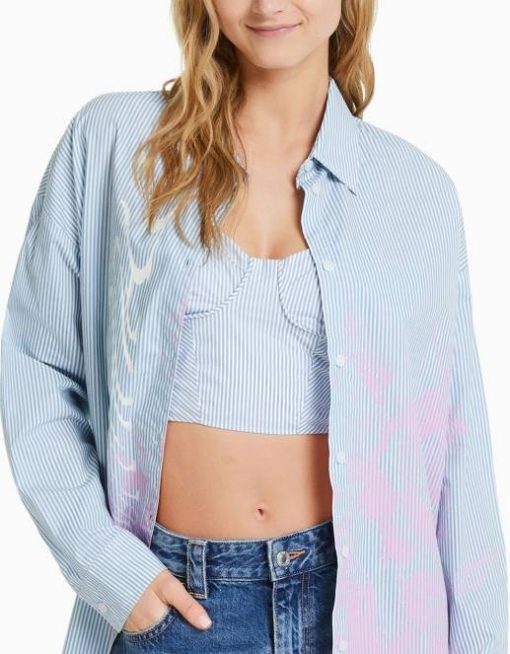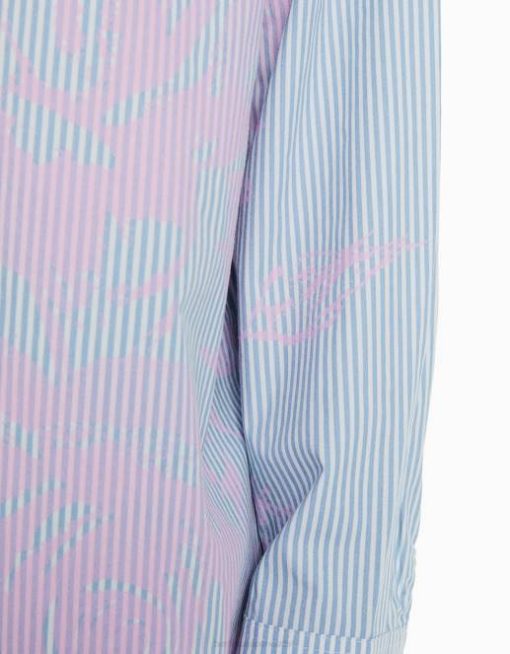 女性 Bershka 長袖ストライププリントポプリンシャツ 6044941 衣類 ライトブルー