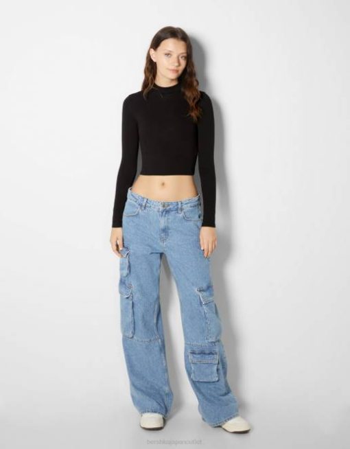 女性 Bershka 長袖ハイネックシャツ2枚組 6044573 衣類 色とりどりの