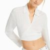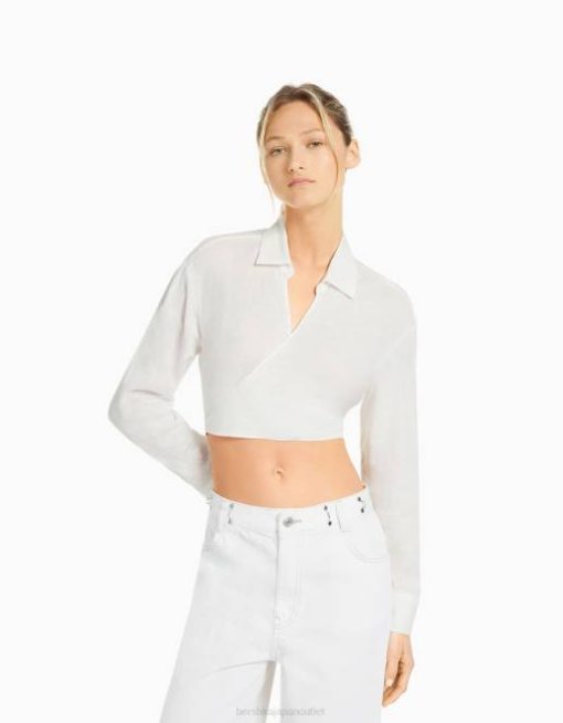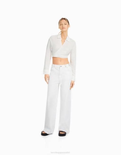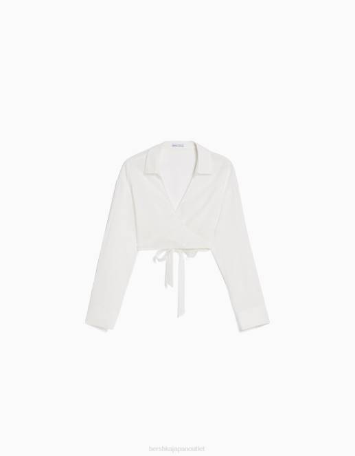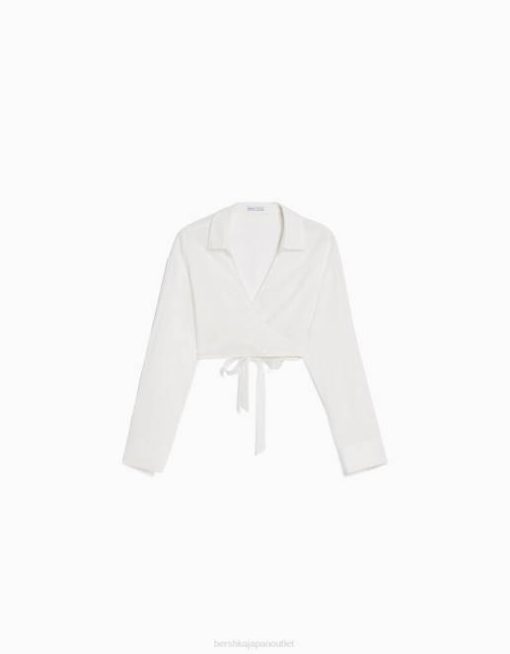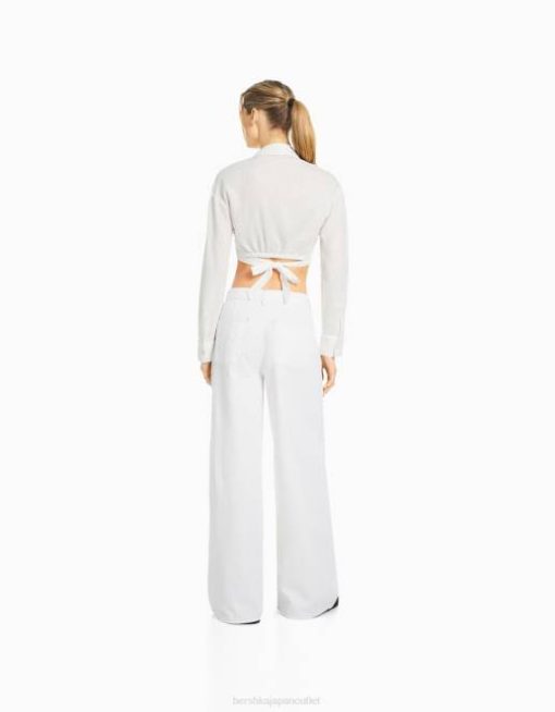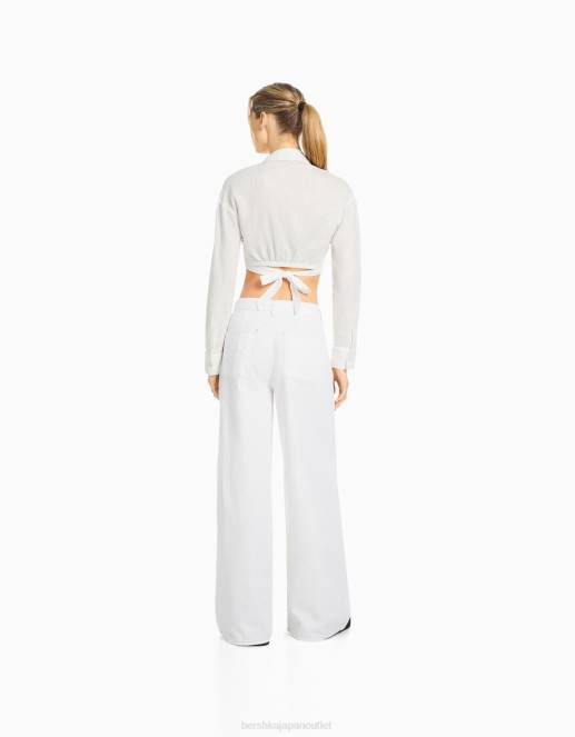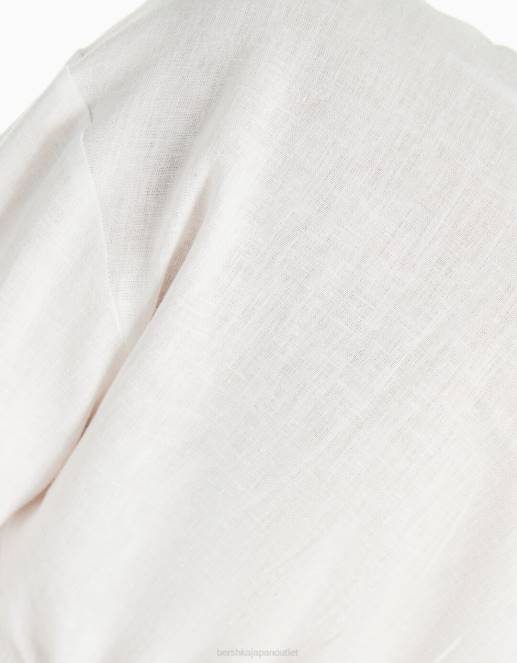 女性 Bershka 長袖リネンブレンドクロスオーバーシャ​​ツ 6044909 衣類 白