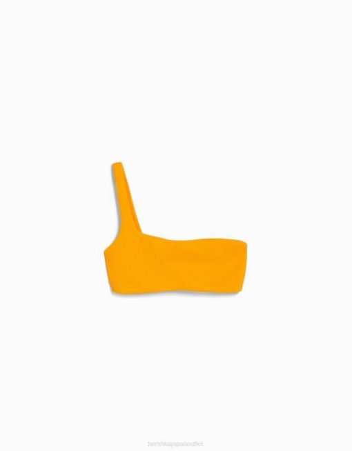 女性 Bershka 非対称ビキニトップ 60441789 衣類 オレンジ