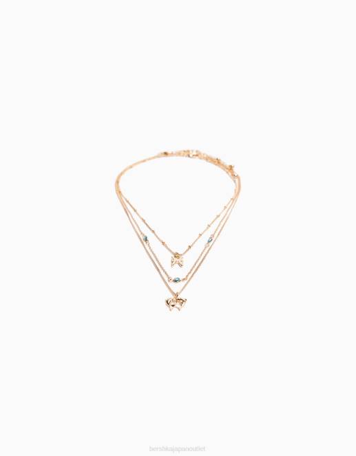 女性 Bershka 魚座の星座ネックレス 3 個セット 60444221 アクセサリー 金