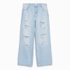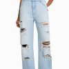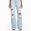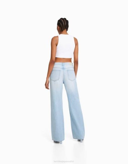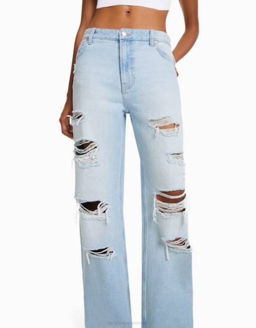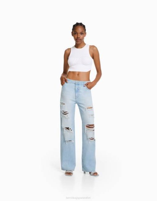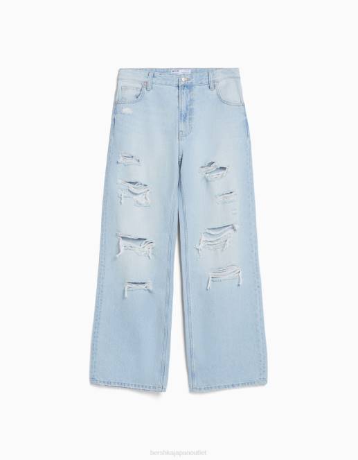 女性 Bershka 90年代 リップド ワイドレッグ ジーンズ 60441582 衣類 ライトブルー