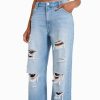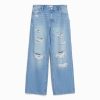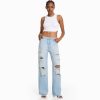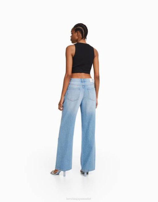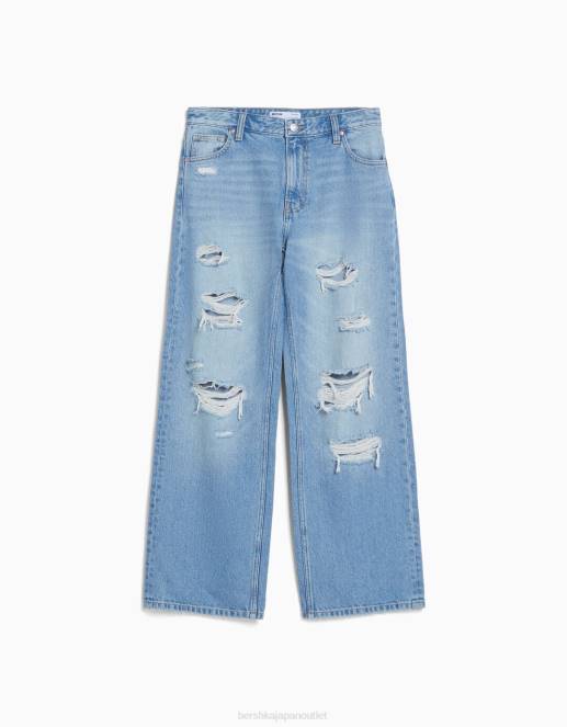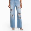 女性 Bershka 90年代 リップド ワイドレッグ ジーンズ 60441583 衣類 ライトブルー
