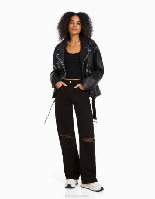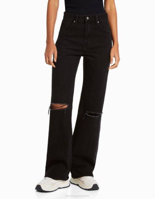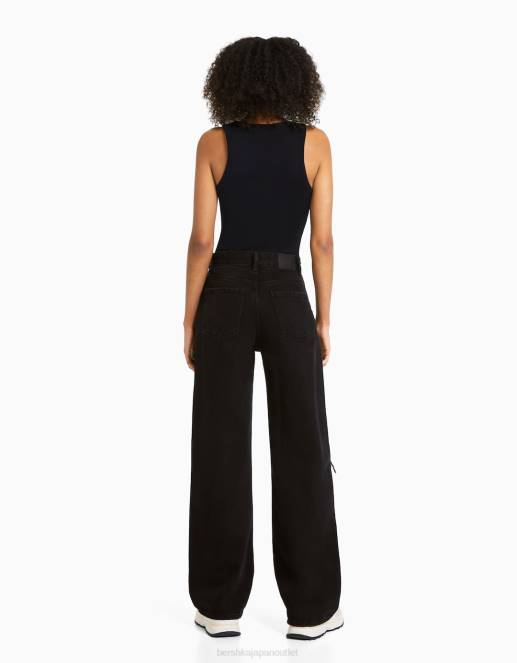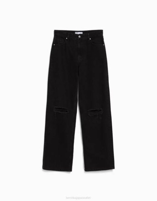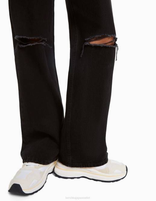 女性 Bershka 90年代 リップド ワイドレッグ ジーンズ 60441604 衣類 黒