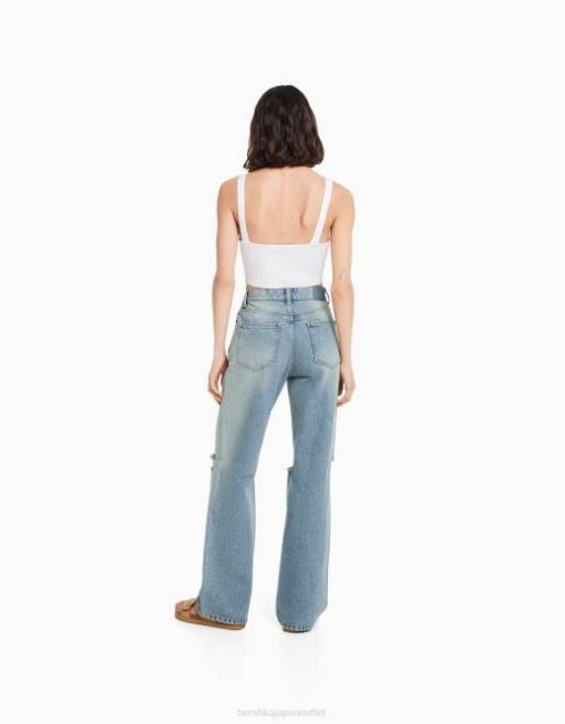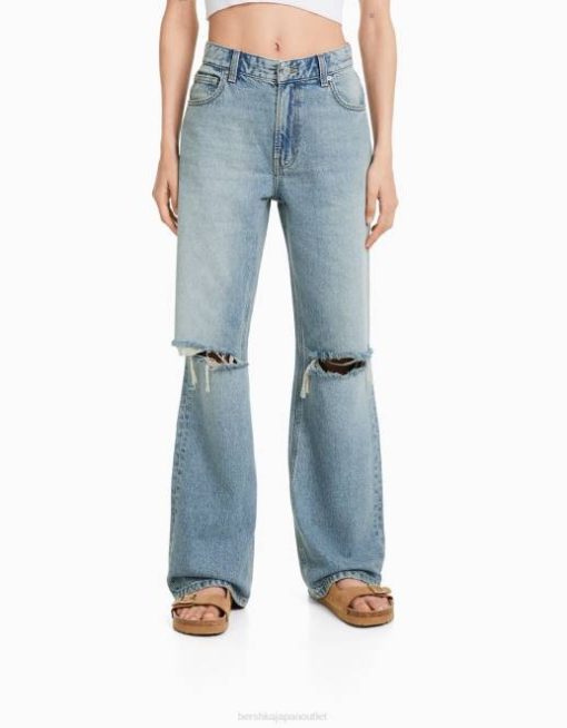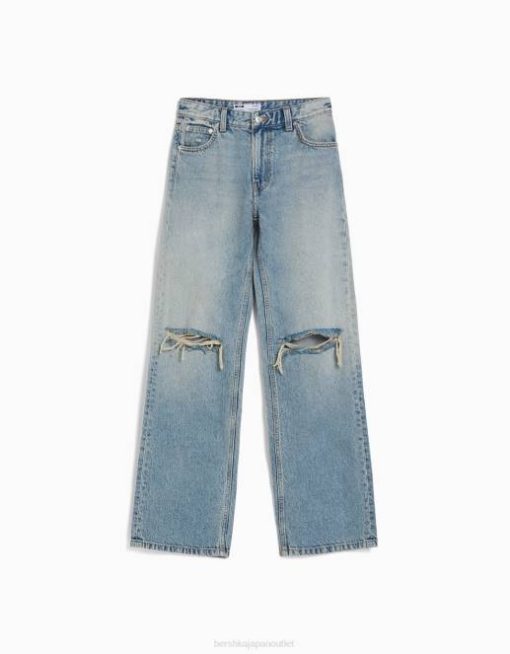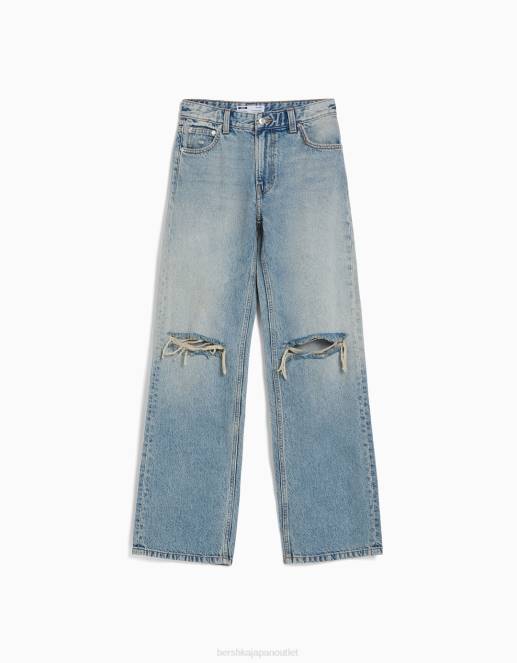女性 Bershka 90’s ワイド リップドジーンズ 60441489 衣類 ライトブルー