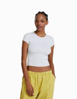 女性 Bershka AC/DC プリント 半袖 T シャツ 6044471 衣類 グレー