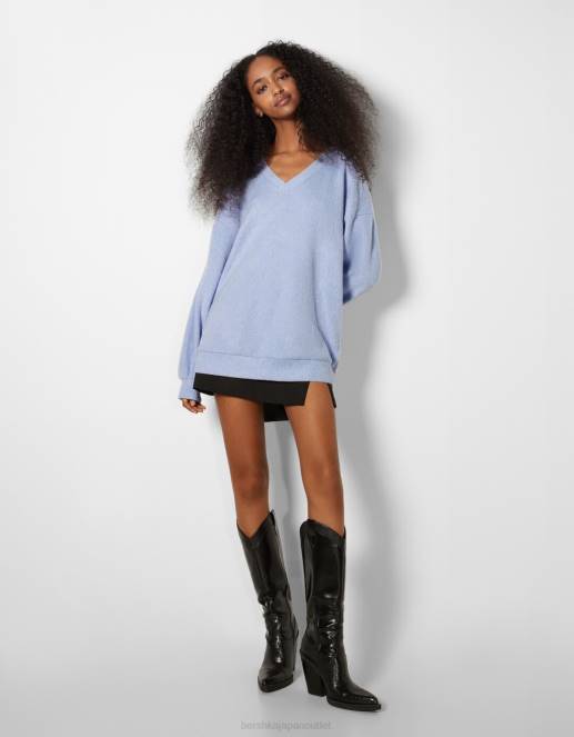 女性 Bershka Vネックセーター 60441004 衣類 青