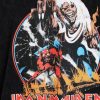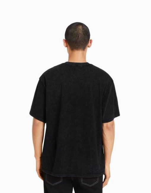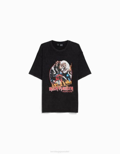 男性 Bershka アイアン・メイデン プリント ボクシーフィット 半袖 Tシャツ 60442728 衣類 濃い灰色