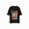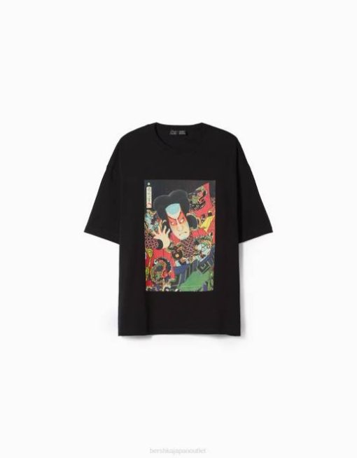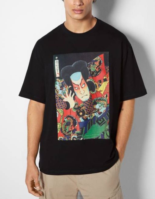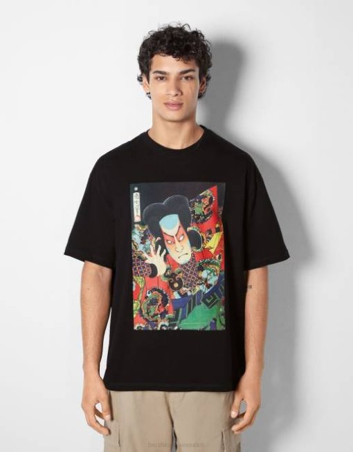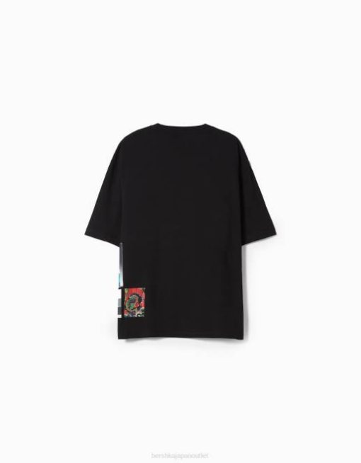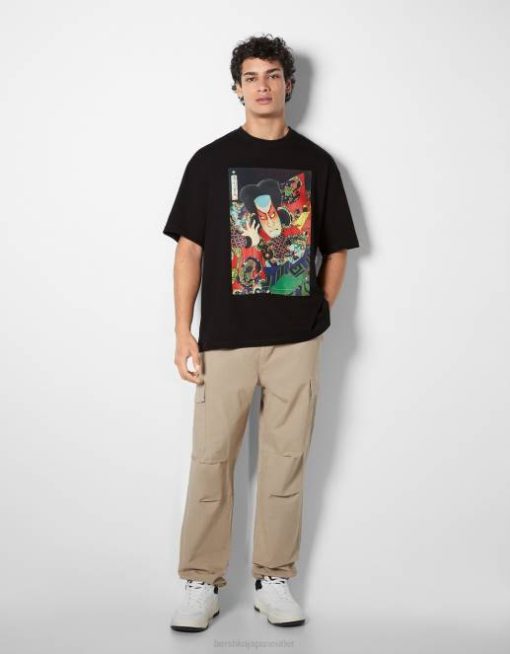 男性 Bershka アートシリーズプリント半袖Tシャツ 60442638 衣類 黒