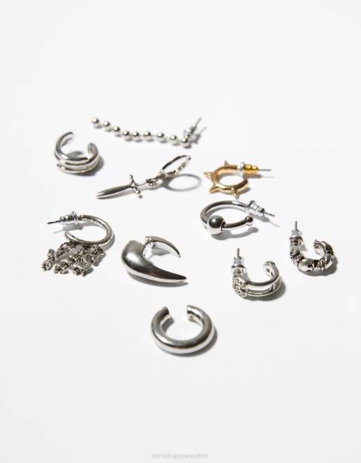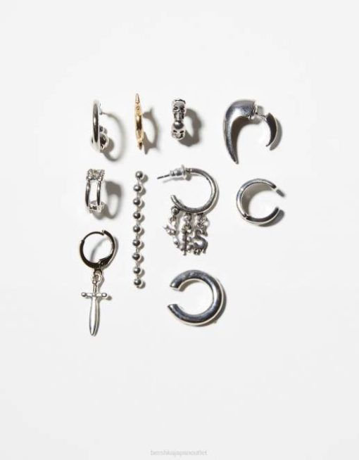 男性 Bershka イヤリング10個セット 60443669 アクセサリー 銀
