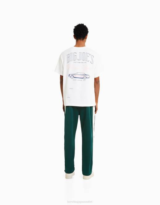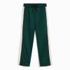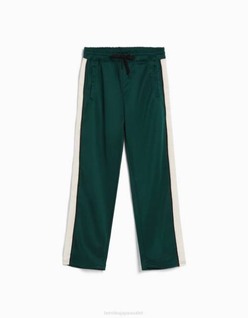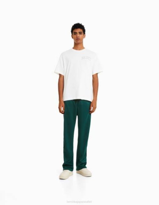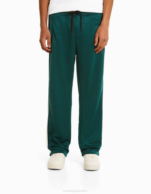男性 Bershka インターロックサイドストライプ付きワイドレッグパンツ 60443236 衣類 緑