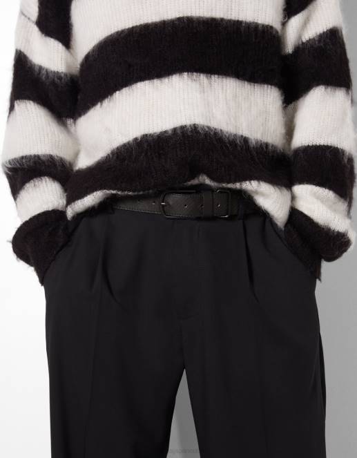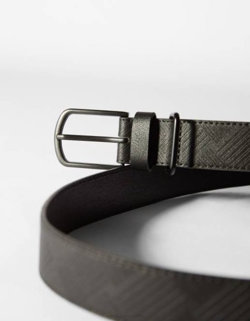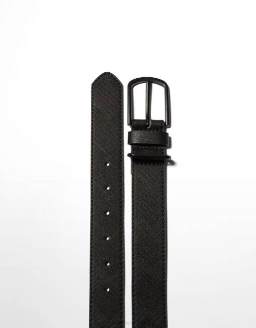 男性 Bershka エンボスフェイクレザーベルト 60443637 アクセサリー 黒