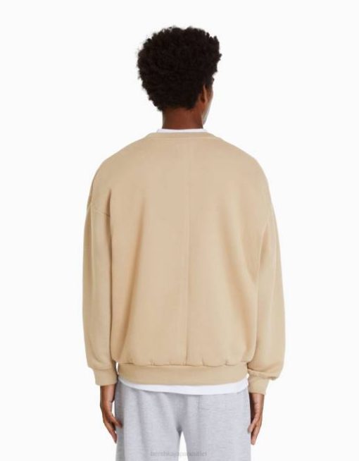男性 Bershka オーバーサイズ クルーネック スウェットシャツ 60442990 衣類 キャメル