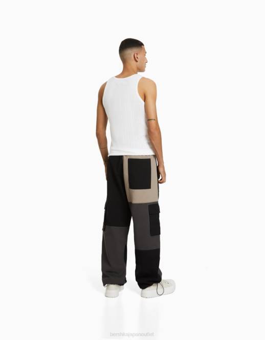 男性 Bershka カラーブロック カーゴスウェットパンツ 60443277 衣類 黒