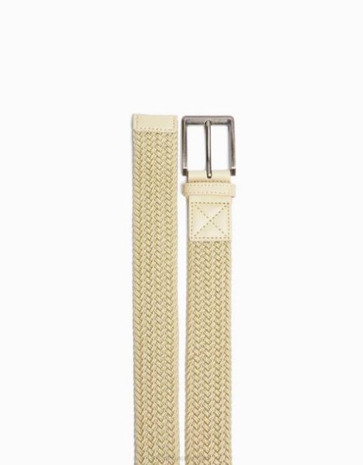 男性 Bershka カラー編み込みベルト 60443629 アクセサリー クリーム