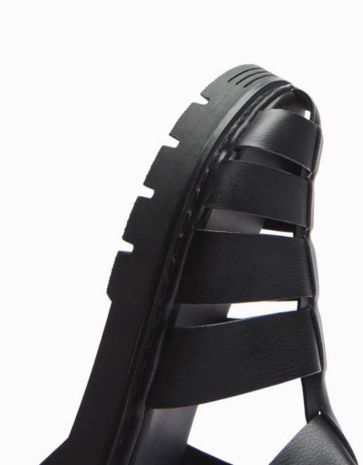 男性 Bershka ケージサンダル 60443539 履物 黒