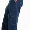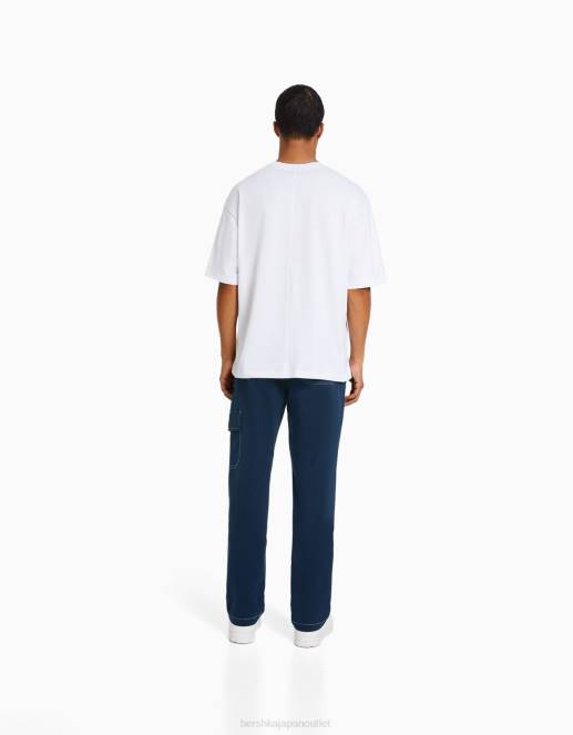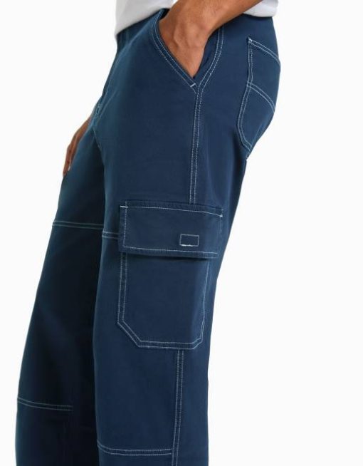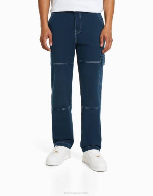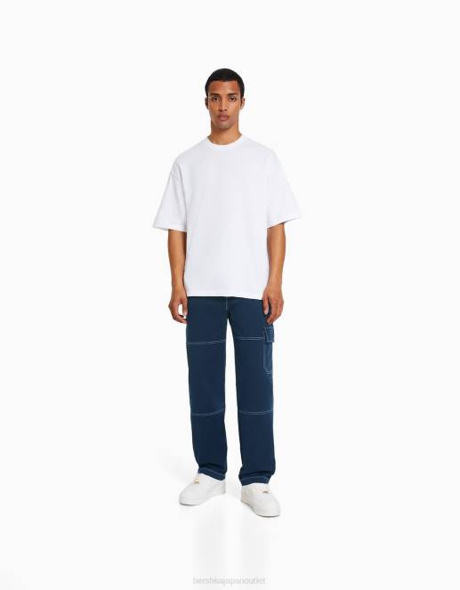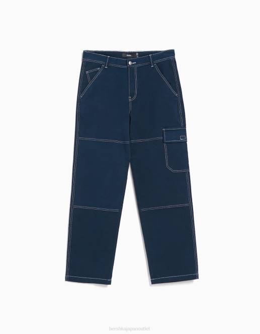男性 Bershka コントラストの効いたシームを施したワイドレッグカーゴパンツ 60443251 衣類 濃紺