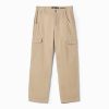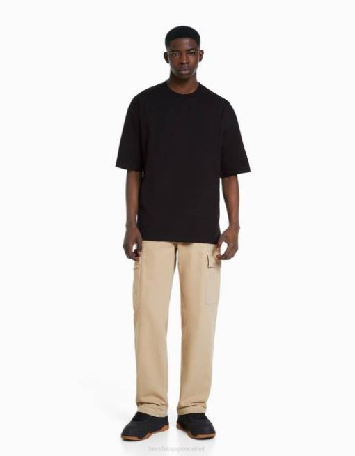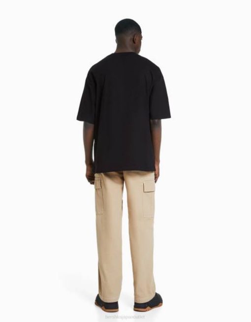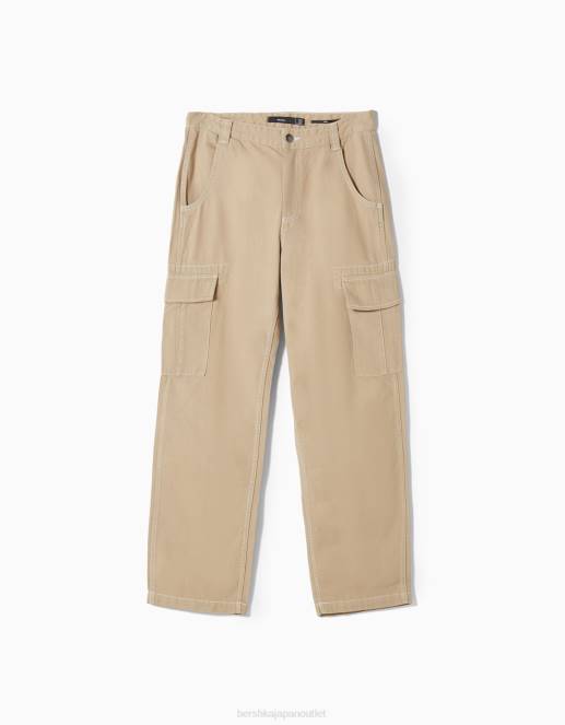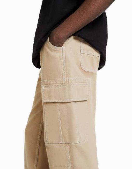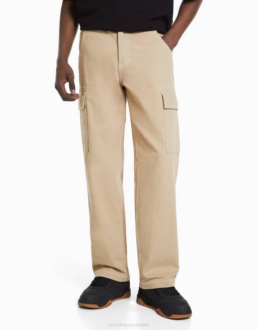 男性 Bershka コントラストステッチが施されたワイドレッグカーゴパンツ 60443258 衣類 キャメル