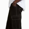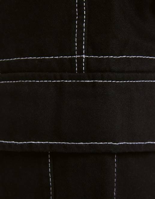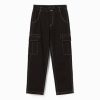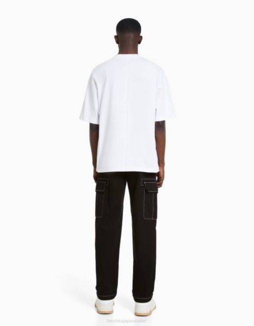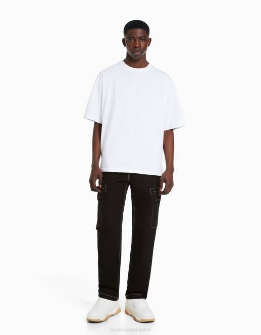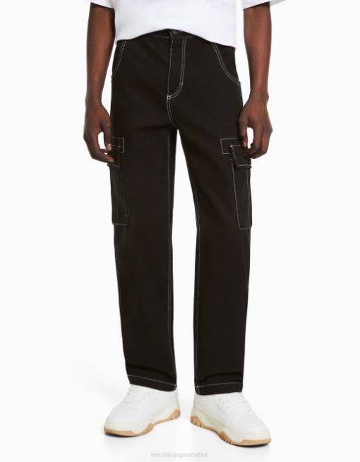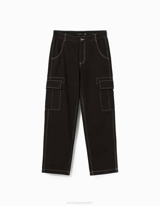 男性 Bershka コントラストステッチが施されたワイドレッグカーゴパンツ 60443256 衣類 黒