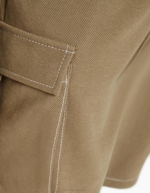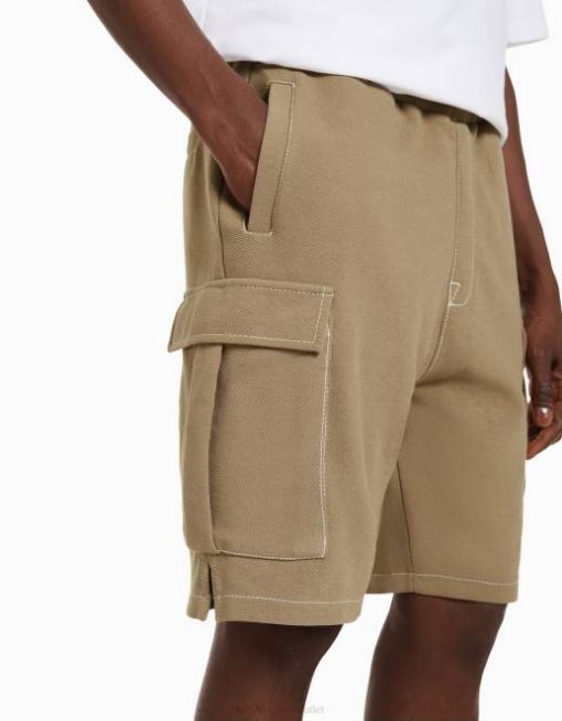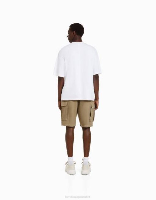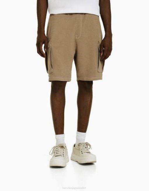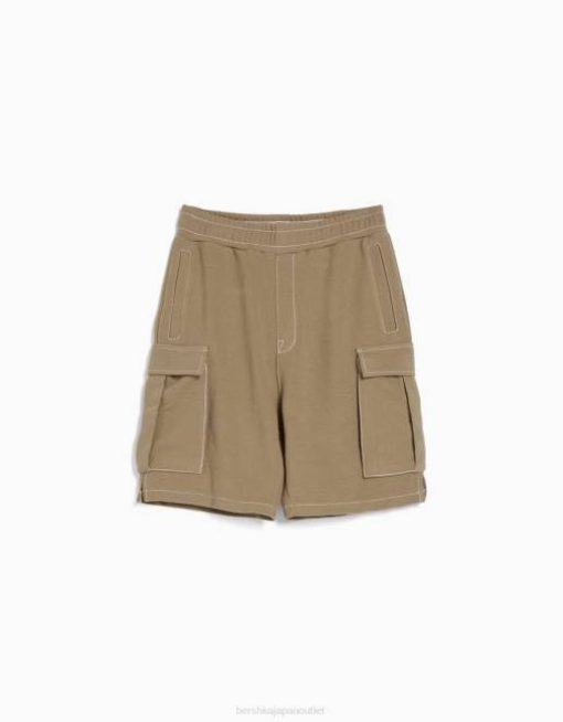 男性 Bershka コントラストスレッド付きツイルカーゴバミューダショーツ 60443292 衣類 キャメル