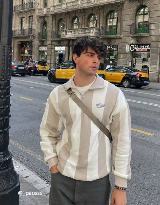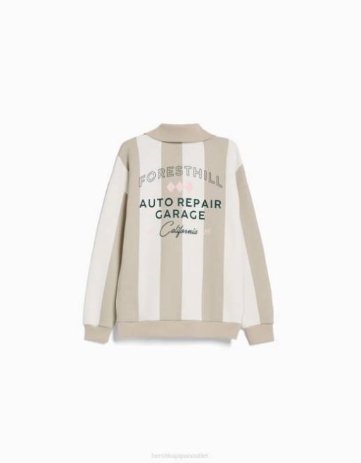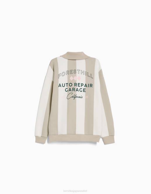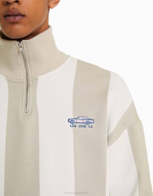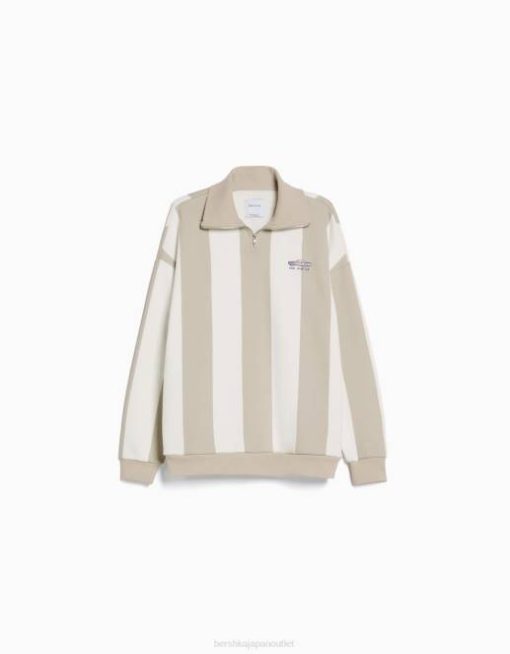 男性 Bershka ジッパー付きストライプスウェットシャツ 60442969 衣類 グレー
