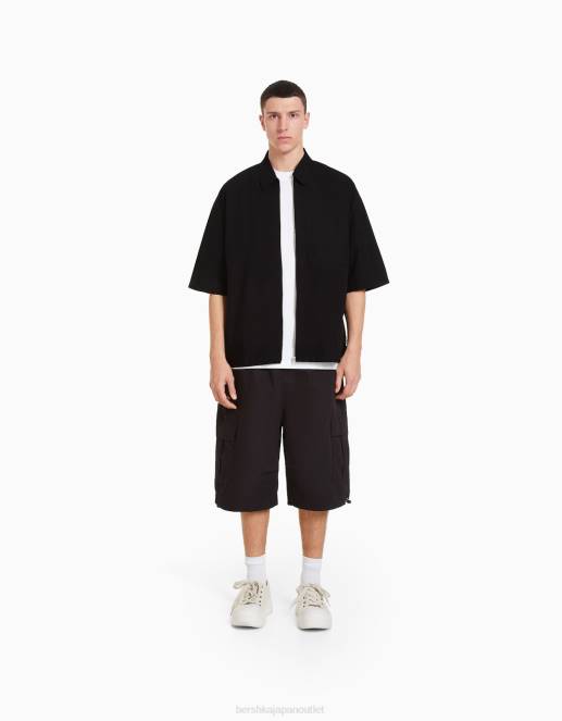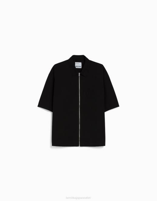 男性 Bershka ジッパー付き半袖シャツ 60442912 衣類 黒