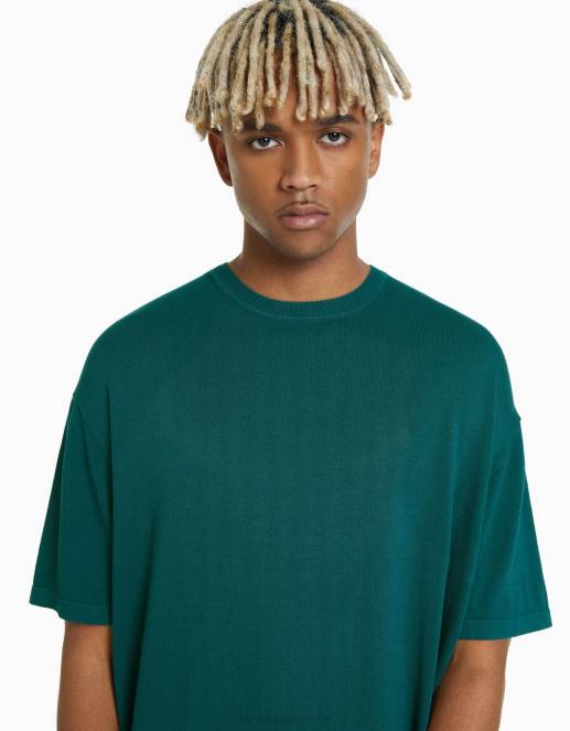 男性 Bershka スクープネックの半袖Tシャツ 60442819 衣類 青