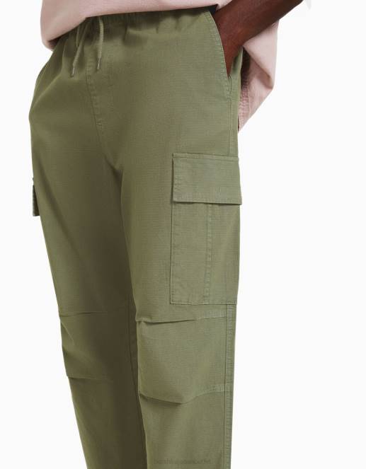 男性 Bershka ストッパー付きカーゴパンツ 60443229 衣類 カーキ