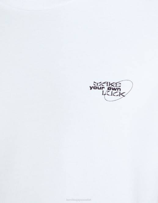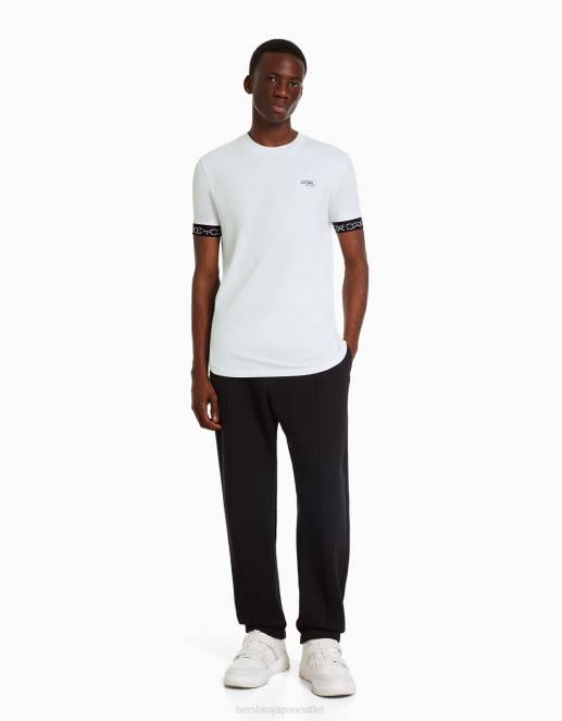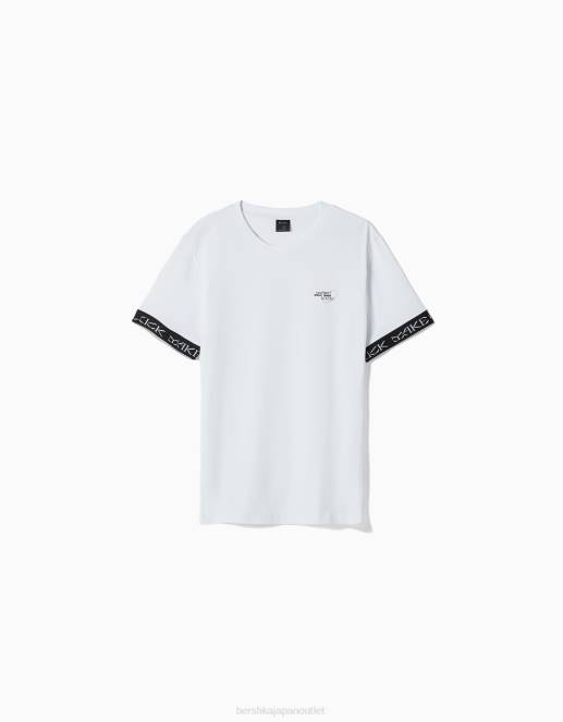 男性 Bershka ストライプディテール付きマッスルフィット半袖Tシャツ 60442688 衣類 白