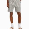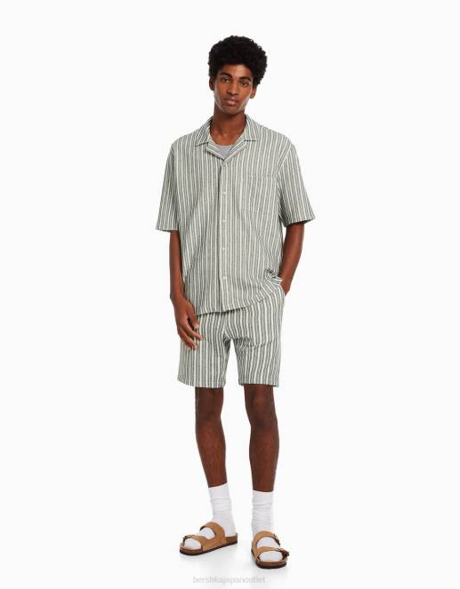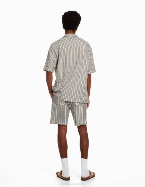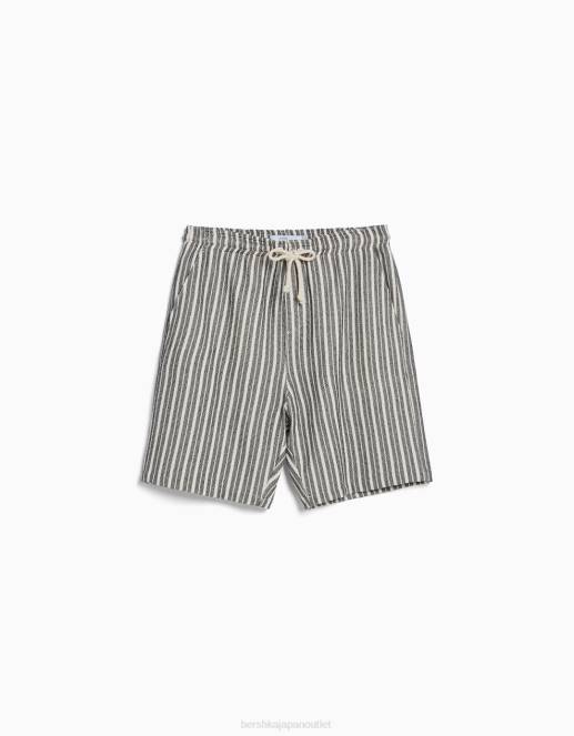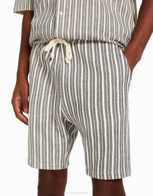 男性 Bershka ストライプ ラスティック ジョガー バミューダ ショーツ 60443370 衣類 白黒