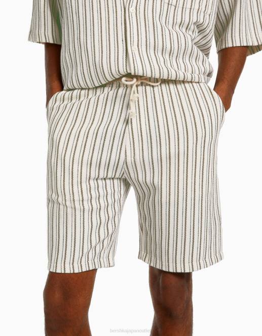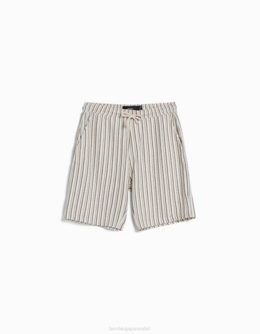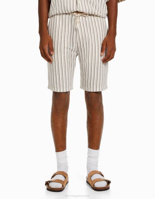 男性 Bershka ストライプ ラスティック ジョガー バミューダ ショーツ 60443369 衣類 クリーム